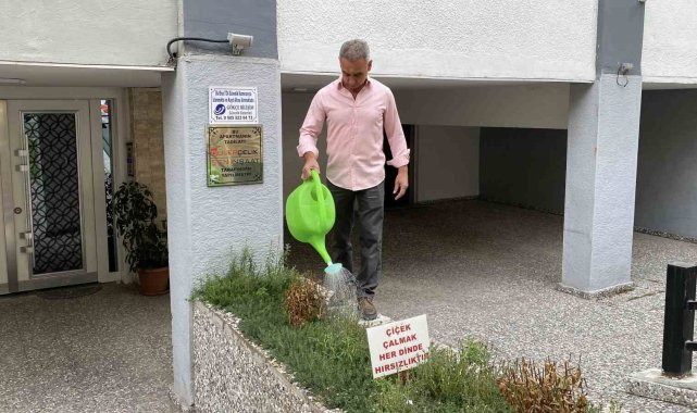 Kırmızıtoprak Mahallesi Taşköprü Caddesi üzerinde bulunan Stad Apartmanı'nın bahçesinden iddiaya göre sürekli çiçekler çalınıyor. Apartman yöneticisi Aydın Kesikbaş, kasalarla ektiği çiçeklerin sökülerek götürülmesine bir türlü çözüm üretemediğini söyledi. Bu durumla ilgili farkındalık oluşturmak isteyen Kesikbaş, "Çiçek çalmak her dinde hırsızlıktır" yazılı bir uyarıyı bahçeye yerleştirdi. Çevreden geçenlerini dikkatini çeken uyarı sayesinde çiçek hırsızlığı olayları azaldı. Bahçeye verdikleri emeğe saygı gösterilmesini isteyen Kesikbaş, hırsızlık yapmak yerine kapısını çalan vatandaşlara çiçek verebileceğini ifade etti.