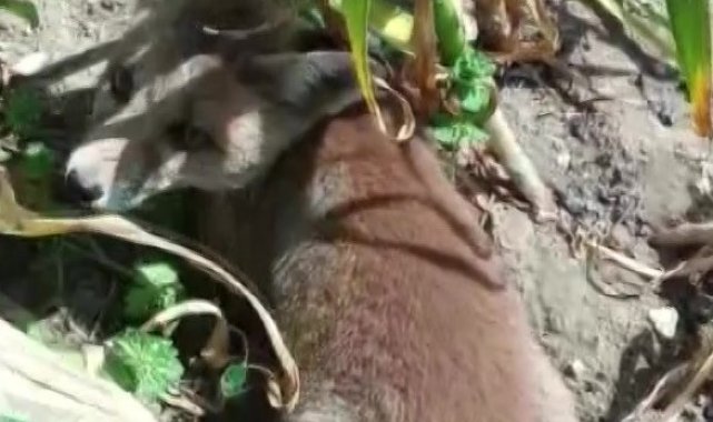 Amasya'nın Suluova ilçesinde bahçesine giren tilkiyle karşılaşan vatandaş "Kanun namına teslim ol. Seni yakaladım" diye seslendi. Kurnaz tilki bir anda ortadan kayboldu.