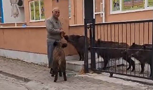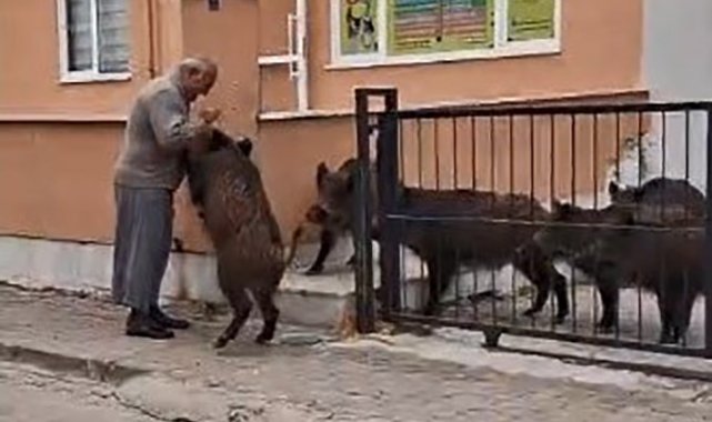 Edinilen bilgiye göre, ilçe merkezinde yemek arayan domuz sürüsü özel bir anaokulun yanındaki bahçeye girdi. Bahçede gezinen domuzları gören mahalle sakinlerinden bir vatandaş ise elinde ekmekle domuzların yanına geldi. Elindeki ekmekleri bölerek domuzlara veren vatandaş, domuzların okulun yanındaki bahçeden çıkmasını sağladı. O anları ise çevredeki bir başka vatandaş cep telefonu kamerası ile görüntüledi. Görüntülerde domuzların ekmekleri yemek için birbiriyle yarıştığı görüldü.
