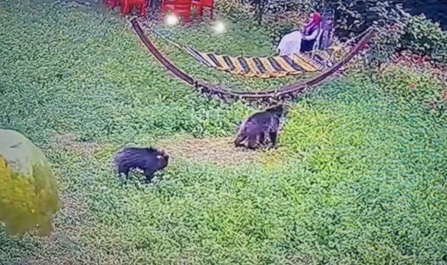 Karabük'te bir bahçeye giren yavru ayılar, güvenlik kamerasınca görüntülendi.