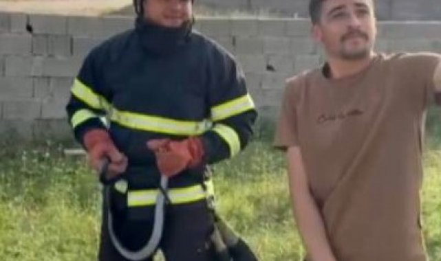 Osmaniye'de bahçeye giren bir buçuk metrelik kara yılanı yakalayan itfaiyeci yılana su içirirken, bazı vatandaşların yılanla hatıra fotoğrafı çektirdiği anlar da kameralara yansıdı.