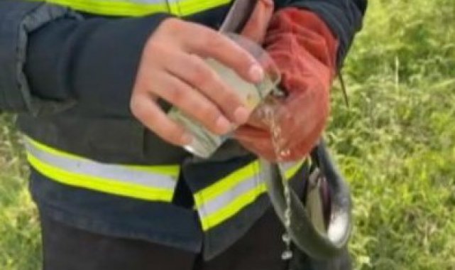 Edinilen bilgilere göre, Mevlana Mahallesi'nde bir evin bahçesine giren yılanı gören vatandaşlar durumu 112 Acil Çağrı Merkezi'ne bildirdi. İhbar üzerine olay yerine gelen Osmaniye Belediyesi itfaiye ekipleri sevk edildi. Kısa sürede bölgeye gelen ekipler, bahçeye giren yılanı yakaladı. Bahçeye giren bir buçuk metrelik kara yılanı yakalayan itfaiyeci, yılana su içirirken, vatandaşların yılanla hatıra fotoğrafı çektirdiği anlar kameralara yansıdı.