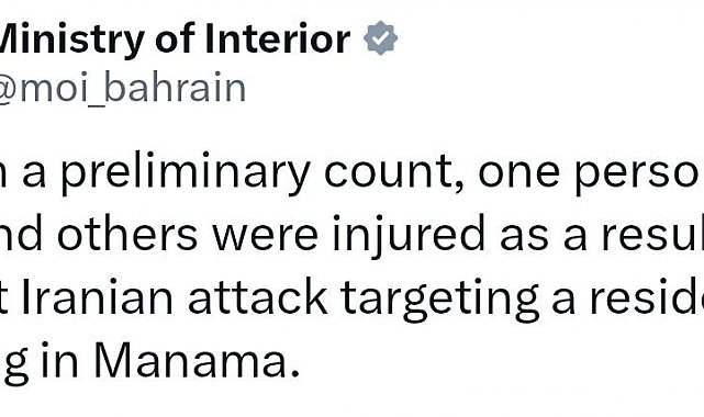 Bahreyn İçişleri Bakanlığı, ülkenin başkenti Manama'daki sivil bir binayı hedef alan İran saldırısında 1 kişinin hayatını kaybettiğini ve yaralananların olduğunu açıkladı.