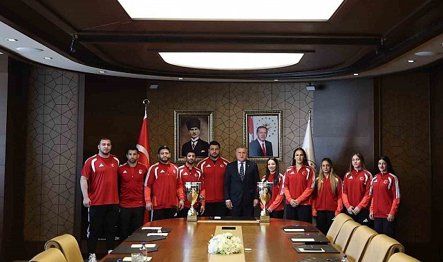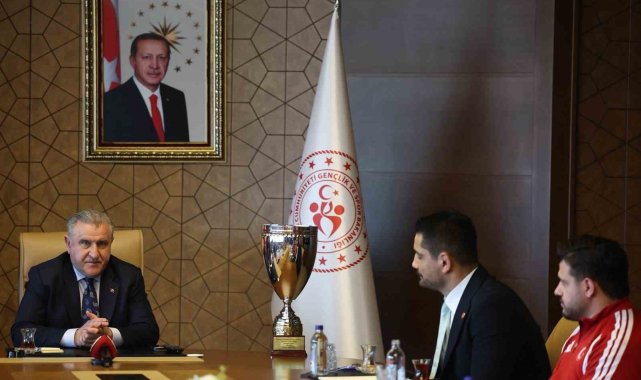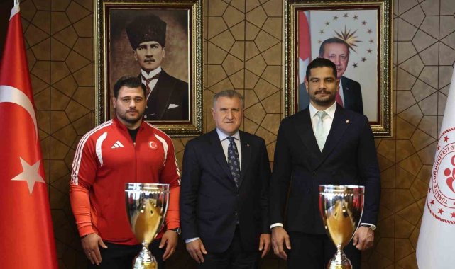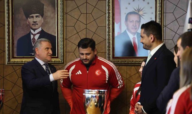 Gençlik ve Spor Bakanı Osman Aşkın Bak, Arnavutluk'ta düzenlenen Avrupa Şampiyonası'nda 2 altın, 3 gümüş ve 6 bronz olmak üzere toplam 11 madalya kazanan milli güreşçileri, 13. kez Avrupa şampiyonu olarak rekor kıran Rıza Kayaalp'i ve Türkiye Güreş Federasyonu Başkanı Taha Akgül'ü öncülüğünde elde edilen başarıların ardından makamında kabul etti.