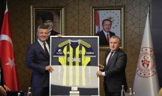 Gençlik ve Spor Bakan Yardımcısı Hamza Yerlikaya, Spor Hizmetleri Genel Müdürü Prof. Dr. Veli Ozan Çakır'ın da bulunduğu görüşmenin ardından Fenerbahçe Kulübü Başkanı Sadettin Saran, Bakan Bak'a üzerinde sarı-lacivertli futbolcuların imzasının yer aldığı forma hediye etti.