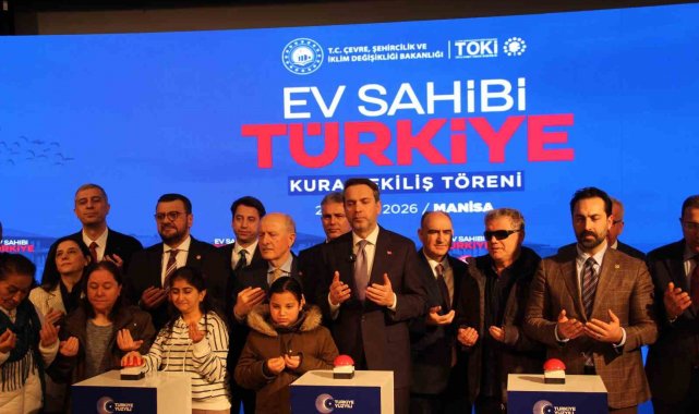 Enerji ve Tabii Kaynaklar Bakanı Alparslan Bayraktar, Manisa'da Toplu Konut İdaresi Başkanlığının (TOKİ) 'Ev Sahibi Türkiye' projesi kapsamında kura çekiliş törenine katıldı. Salonu dolduran yüzlerce Manisalı'nın heyecanına ortak olan Bakan Bayraktar, herkes ev sahibi olana kadar üretmeye devam edeceklerini söyledi.