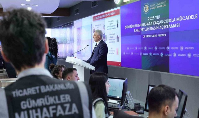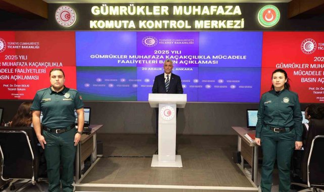 Ticaret Bakanı Ömer Bolat, Bakanlığına bağlı Gümrükler Muhafaza Komuta Kontrol Merkezi'nde 'Gümrükler Muhafaza Kaçakçılıkla Mücadele Faaliyetleri' konulu basın açıklaması gerçekleştirdi. Gümrükler Muhafaza Genel Müdürlüğü'nün kaçakçılıkla mücadelede yürüttüğü faaliyetlerin anlatıldığı video gösterimiyle başlayan açıklamada, Bakan Bolat, 2025 yılı Gümrükler Muhafaza Genel Müdürlüğü'nün gümrüklerde gerçekleştirdiği faaliyetlere ilişkin konuştu.