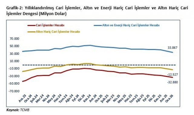 Bolat, TCMB'nin ödemeler dengesi istatistiklerinde veri kalitesini artırmak amacıyla borçlanma senetlerine yönelik faiz giderlerinin hesaplanmasında mikro veri tabanlı yeni bir yönteme geçtiğine söyleyerek, "Bu yöntem değişikliği neticesinde, Eylül 2020'den itibaren birincil gelir dengesi altındaki 'portföy yatırımları/gider' kalemi toplamda 8,9 milyar dolar yukarı yönlü güncellenmiştir. 2025'te ise 'portföy yatırımları/gider' kaleminde 4,8 milyar dolar yukarı yönlü önemli düzeyde bir revize gerçekleşmiştir. Bu revizyonlar neticesinde 2025 yılı cari işlemler açığı 25,2 milyar dolardan 30,1 milyar dolara revize olmuştur" ifadelerini kullandı.