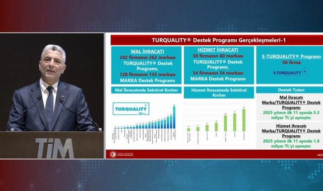 Ticaret Bakanı Ömer Bolat, Turquality Vizyon Buluşması ve Markalaşma Konferansı'na katıldı. Bakan Bolat, Türkiye olmadan uluslararası platformlarda bölgesel ve küresel konuların çözümü noktasında büyük bir eksiklik bulunduğunu söyledi. Turquality'nin, Türkiye'nin ihracat başarısında çok önemli bir dönüm noktası ve kilometre taşı olduğunu belirten Bolat, toplam mal ve hizmetler ihracatında 400 milyar dolara yaklaştıklarını, 2030'a kadar olan sürede 500 milyar dolarlık hedefi başaracaklarını kaydetti.