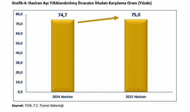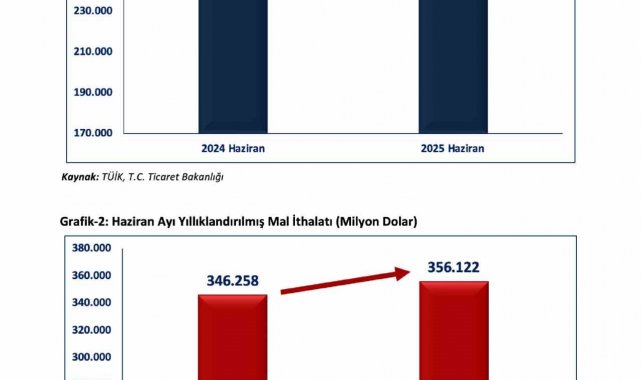 Bolat, Avrupa Birliği'nin (AB) yıllıklandırılmış ithalatının hala yatay seyrini koruması, zayıf dış talep, yakın coğrafyada süregelen savaşlar, iç karışıklıklar ve tarife artışlarının getirdiği belirsizlik gibi zorlu rekabet koşullarına rağmen Türkiye'nin ihracatındaki artışın devam ettiğini aktardı. İhracatta elde edilen başarıların üretim ve istihdamda olumlu sonuçlar verdiğini belirten Bolat, "Haziranda ithalat ise bir önceki yılın aynı ayına göre yüzde 15,2 artarak 28,7 milyar dolar oldu. Ocak-haziran döneminde ithalatımız geçen yılın aynı dönemine göre yüzde 7,2 artışla 180,8 milyar dolar olarak kayıtlara geçti. Haziranda yıllıklandırılmış ithalatımız bir önceki yılın aynı ayına göre 9,9 milyar dolar artarak 356,1 milyar dolar oldu. Dış ticaret açığımız haziranda yüzde 38,8 artarak 8,2 milyar dolar olarak gerçekleşti. Bu yılın ilk yarısında dış ticaret açığımız geçen yılın aynı dönemine göre yüzde 16,3 artışla 49,4 milyar dolar oldu. Yıllıklandırılmış dış ticaret açığımız geçen yılın aynı ayına göre 1,6 milyar dolar gerileyerek 89,2 milyar dolar olarak gerçekleşti. Küresel ekonomi ve ticaretteki zorlu koşullara rağmen Bakanlık olarak ihracatçılarımızın önünü açan desteklerimiz ve etkin ticari diplomasi faaliyetlerimiz ile 2025 yılında da azim ve gayretle çalışacağız" dedi.