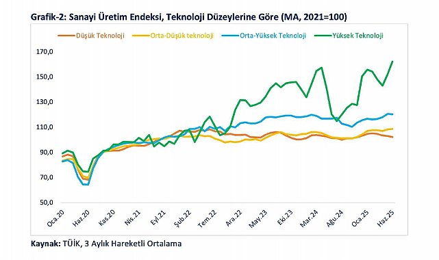 Bolat imalat sanayideki büyümeye ilişkin de bilgilendirmelerde bulunarak, "2025 yılı ikinci çeyreğinde imalat sanayi, 2022'nin ikinci çeyreğinden bu yana en yüksek artışı kaydederek yüzde 7,0 büyümüş ve GSYH büyümesine 1,1 puan katkı sağlamıştır. İmalat sanayindeki bu güçlü artışın temelinde yüksek teknoloji üretimindeki ivmelenme bulunmaktadır. Nitekim Nisan-Haziran döneminde yüksek teknoloji üretimi çeyreklik bazda yüzde 9,6, yıllık bazda ise yüzde 38,5 oranında artış göstermiştir. Bu performans ile yüksek teknoloji ihracatı yıllık bazda Temmuz ayında yüzde 71,7, Ağustos ayında yüzde 42,3 oranında artış kaydetmiştir" ifadelerine yer verdi.