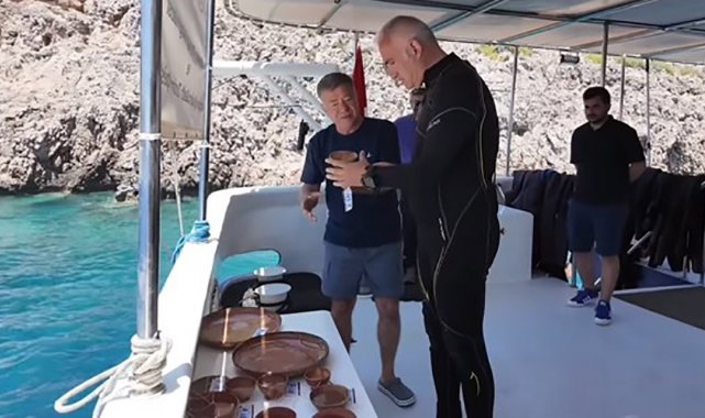 Kültür ve Turizm Bakanı Mehmet Nuri Ersoy, Antalya'nın Adrasan açıklarında 40 metre derinlikte bulunan Seramik Batığı'nda yürütülen kazı çalışmalarını dalış yaparak yerinde inceledi