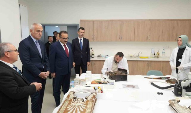 Bakan Ersoy, Kültür Varlıkları ve Müzeler Genel Müdürlüğü bünyesinde faaliyet gösteren Konservasyon Laboratuvarı'nda yürütülen çalışmaları yerinde inceleyerek, son yıllarda yapılan yatırımların Türkiye'yi arkeoloji ve kültürel miras alanında uluslararası ölçekte güçlü bir konuma taşıdığını vurguladı.