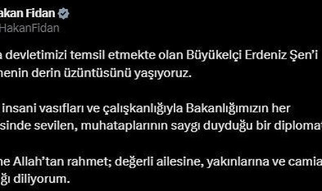 Bakan Fidan'dan Büyükelçi Şen'in yakınlarına başsağlığı mesajı