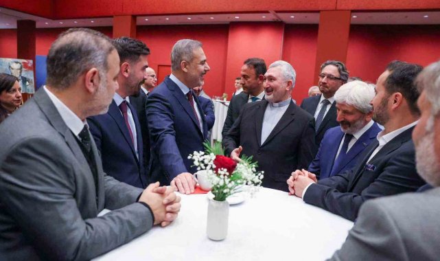 Dışişleri Bakanı Hakan Fidan, Almanya'ya gerçekleştirdiği resmi ziyaret kapsamında Türkiye'nin Berlin Büyükelçiliği'nde Türk sivil toplum kuruluşlarından temsilciler, iş insanları ve basın mensuplarıyla bir araya geldi.