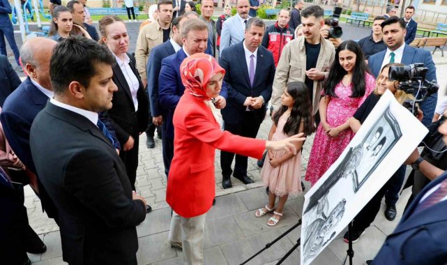 Engelsiz Yaşam Bakım Rehabilitasyon ve Aile Danışma Merkezi'nde kalan özel bireylerle bir süre sohbet eden, onların hal ve hatırlarını soran Aile ve Sosyal Hizmetler Bakanı Mahinur Özdemir Göktaş'a, kurumdaki engelli personel tarafından yapılan ve Bakan Mahinur Özdemir Göktaş'ın dedesiyle birlikte yer aldığı karakalem resim çalışması hediye edildi.