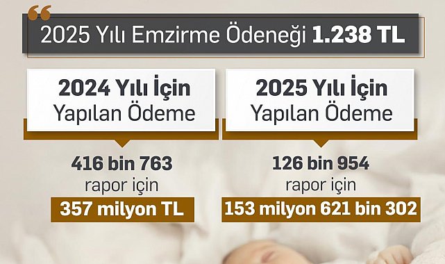 Çalışma ve Sosyal Güvenlik Bakanı Vedat Işıkhan, "2024 yılında 357 milyon TL'ye ulaşan emzirme ödeneği sağladık. Bu sene sağladığımız destek miktarı 153 milyon TL'ye ulaştı" dedi.