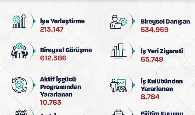 Çalışma ve Sosyal Güvenlik Bakanı Vedat Işıkhan, "Bu yılın ilk 2 ayında 213 binden fazla işe yerleştirmeye aracılık ettik. 65 binden fazla iş yeri ziyareti ve 612 binden fazla bireysel görüşme gerçekleştirdik" dedi.