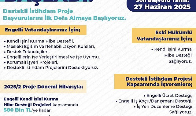 'Engelli Kendi İşini Kurma Hibe Desteği Projesi' kapsamında 580 bin liraya kadar, Eski Hükümlü Kendi İşini Kurma Hibe Desteği Projesi kapsamında 435 bin liraya kadar, 'Korumalı İş Yeri Desteği' kapsamında ise 720 bin liraya kadar destek verilecek.