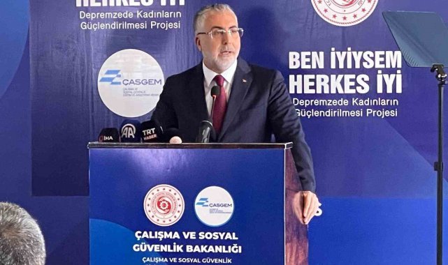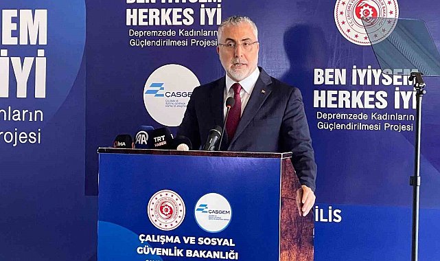 Bakan Işıkhan, "Bugün açılışını gerçekleştireceğimiz bu projeyi de tam olarak böyle bir amaca uygun olarak düşündük ve yürütmeye başladık. Kurumumuz ÇASGEM vasıtasıyla, Ocak ayından başlayarak Kilis ve deprem bölgesi diğer 4 ilimizde hayata geçirdiğimiz "Ben İyiysem, Herkes İyi" Depremzede Kadınların Güçlendirilmesi Projesi kapsamında, işçilerimize çeşitli motivasyon seminerleri, eğitimler, odak grup toplantıları ve birebir görüşmelerle destek vermeye başladık. Projemiz özellikle aile ve ailenin yaşadığı sorunlar, aile içi iletişim, iş ve aile yaşamının uyumlaştırması, travma sonrası stres bozukluğu ve başa çıkma, iş yerinde psikososyal risk faktörleri, duygusal dayanıklılık, stres yönetimi, bilinçli farkındalık teknikleri gibi sizleri ruhsal açıdan rahatlatacak, iş hayatınıza ve aile hayatınıza çok daha iyi bir şekilde odaklanmanıza yardımcı olacak önemli konuları içermektedir. Bu proje vesilesiyle, kadınların iş gücü içerisinde aktif rol alabilmelerini, aynı zamanda ailelerinin temel destekleyicisi olarak, varlıklarını sağlıklı bir şekilde sürdürebilmeleri için iyilik hallerinin, farkındalıklarının geliştirilmesi ve stresle başa çıkma kapasitelerinin artırılmasını sağlamış olacağız. Üzerinde hassasiyetle durduğumuz kadın istihdamına da güçlü bir destek sağlayacağına inandığımız bu değerli projeyi hayata geçiren çalışma arkadaşlarım başta olmak üzere, ÇASGEM Başkanımız, Prof. Dr. Elif Gökçearslan olmak üzere, projeye emek veren, fikir, öneri ve görüşleriyle destekleyen mesai arkadaşlarımı tebrik ediyorum. Bireysel düzeyde kadınlara sağlayacağı olumlu katkıların yanı sıra toplumsal düzeyde de farkındalığı artıracağına yürekten inandığımız projemizin; Kilis'in kahraman ve cefakar kadınları başta olmak üzere tüm çalışanlarımıza ve ülkemize hayırlı olmasını diliyorum. Bakanlık olarak bizler, Kilis'i kadim tarihine, sosyal dokusuna ve aziz halkına yakışır bir şekilde, yeniden ayağa kaldıracak her türlü çalışmayı, hayata geçirmeye devam edeceğiz. Ben bu vesileyle depremlerde yitirdiğimiz kardeşlerimize bir kez daha Allah'tan rahmet diliyor, tedavi görenlere de acil şifalar niyaz ediyorum. Tüm depremzedelerimize tekrar geçmiş olsun dileklerimi iletiyorum" diye konuştu.