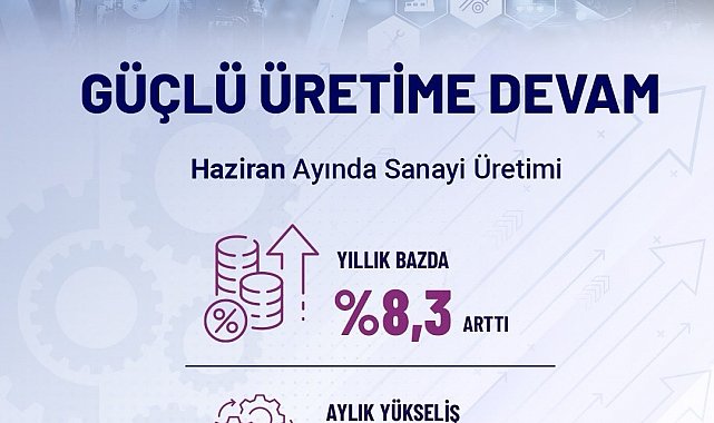 "Sanayicilerimiz güçlü üretimi sürdürüyor. Haziran ayında Sanayi Üretim Endeksi yıllık yüzde 8,3 arttı. Aylık yükseliş yüzde 0,7 olarak kaydedildi. En yüksek artış yüksek teknoloji ürün grubunda gerçekleşti. Katma değerli üretim, istihdamı destekleyici adımlar ve ihracatla Türkiye'nin kalkınmasına hız vermeye devam edeceğiz."