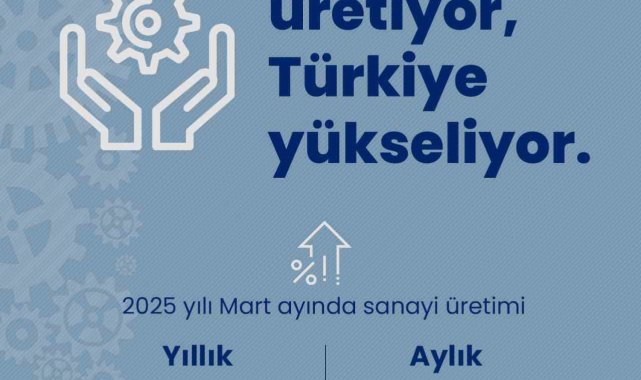 Sanayi üretim endeksi, bu yılın mart ayında yıllık yüzde 2,5, aylık yüzde 3,4 yükseldi. Üretimdeki artışı değerlendiren Sanayi ve Teknoloji Bakanı Mehmet Fatih Kacır, "Sanayi üretim endeksi 2025 yılı Mart ayında yıllık yüzde 2,5; aylık yüzde 3,4 yükseldi. En büyük artış, yıllık yüzde 4,3 ile yüksek teknoloji grubunda yaşandı. Sanayicimizi tüm imkanlarımızla desteklemeye, Türkiye'yi yatırımla, istihdamla, üretimle ve ihracatla büyütmeye devam edeceğiz. Önümüzdeki süreçte sanayicilerimiz için finansman ve istihdam imkanlarını geliştirecek; sanayimizin rekabet gücünü koruyacağız" ifadelerini kullandı.