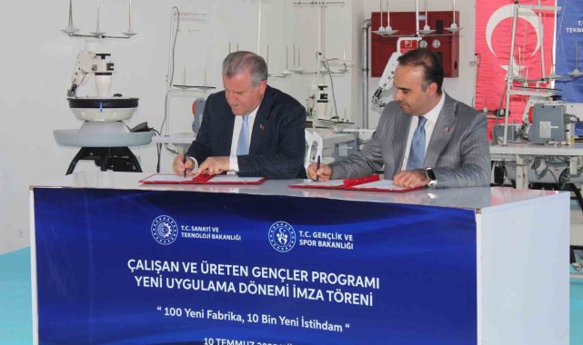 Sanayi ve Teknoloji Bakanı Mehmet Fatih Kacır ile Gençlik ve Spor Bakanı Osman Aşkın Bak, Siirt'te 'Çalışan ve Üreten Gençler Programı' kapsamında düzenlenen imza törenine katıldı.