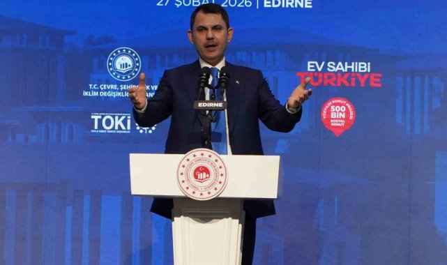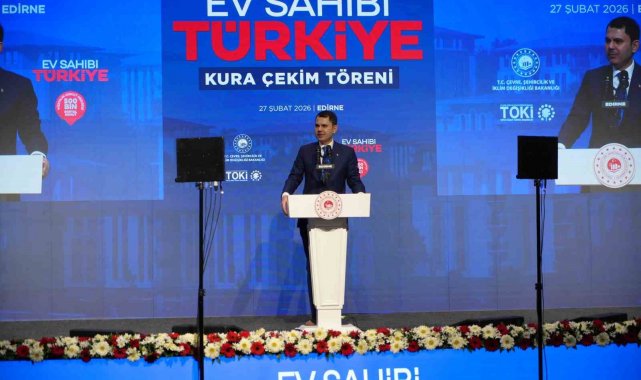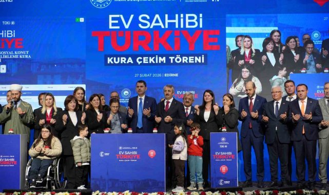 Çevre, Şehircilik ve İklim Değişikliği Bakanı Murat Kurum, Edirne'de "Yüzyılın Konut Projesi 500 Bin Sosyal Konut" kapsamında düzenlenen 'Ev Sahibi Türkiye Kura Çekim Töreni'ne katıldı. Bakan Kurum, "500 bin sosyal konut seferberliğimiz kapsamında Edirne'de inşa edeceğimiz 2 bin 537 konutumuzun kura heyecanını yaşıyoruz. Şimdiden yeni yuvalarımızın kıymetli annelerimize, babalarımıza, yavrularımıza ve gençlerimize hayırlı, uğurlu olmasını diliyorum" dedi.