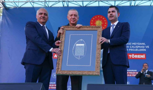 Çevre, Şehircilik ve İklim Değişikliği Bakanı Murat Kurum, "Bugün bir yandan deprem bölgesinde 250 bin konutu teslim edip, 453 bin hedefine koşarken, diğer taraftan 81 ilimizde on binlerce projeyi yapabilen büyük ve güçlü bir Türkiye var" dedi.