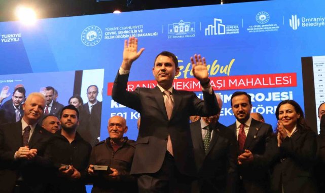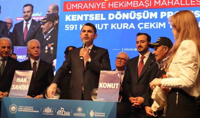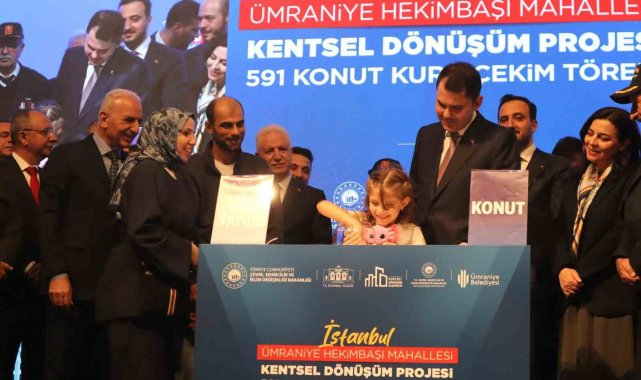 Ümraniye Hekimbaşı Mahallesi'nde yürütülen kentsel dönüşüm projesinde 591 konut ve 28 ticari birimin hak sahipleri, Çevre, Şehircilik ve İklim Değişikliği Bakanı Murat Kurum'un katıldığı kura töreniyle yeni yuvalarına kavuştu. Törende yeni bir kentsel dönüşüm projesinin müjdesini veren Bakan Kurum, "3 milyon liraya kadar dev bir destek paketi hazırlıyoruz. Evleri dönüşüme giren vatandaşlarımız bir yıl boyunca ödeme yapmayacaklar. Tam 180 ay vade ve aylık 0.69 ödeme planı sunacağız" dedi.