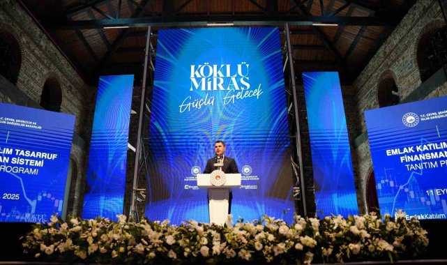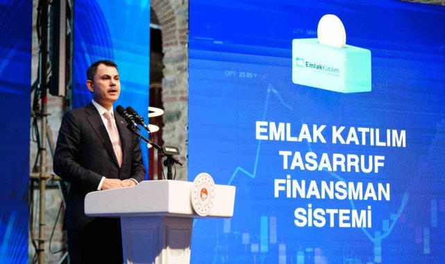 Çevre, Şehircilik ve İklim Değişikliği Bakanı Murat Kurum, 81 ilde faizsiz ev, iş yeri ve araç satın alma sistemi "Emlak Katılım Tasarruf Finansman Sistemi"nin lansmanına katıldı.