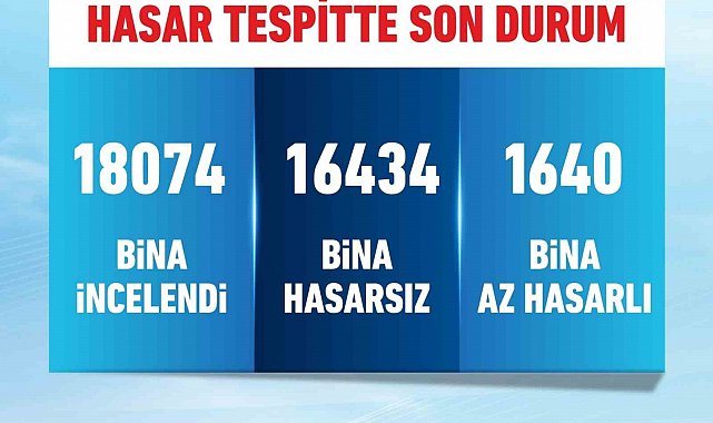 "18 bin 74 binayı inceledik. 16 bin 434 binanın hasarsız, 1640 binanın az hasarlı olduğunu tespit ettik. Hasar tespit çalışmalarımızın tamamlanmasıyla gerekeni yapacağız".