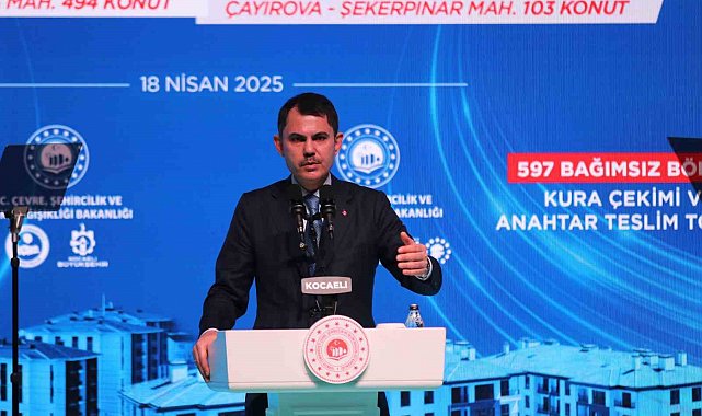 Çevre, Şehircilik ve İklim Değişikliği Bakanı Murat Kurum, Kocaeli Kongre Merkezi'nde gerçekleştirilen "Kocaeli'de Büyük Dönüşüm Anahtar Teslimi ve Kura Çekimi" törenine katıldı. Törende, Körfez ilçesindeki Barbaros Mahallesi'nde 494 ile Çayırova ilçesindeki Şekerpınar Mahallesi'nde 103 konut olmak üzere, toplamda 597 konuta ilişkin kura çekimi ve anahtar teslimi yapıldı.