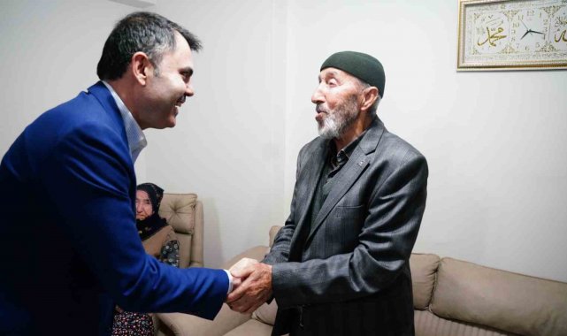 Bakan Kurum, Malatya ziyareti çerçevesinde Yeşilyurt ilçesine bağlı Kuyulu Mahallesi'nde yaşayan Mehmet Ürün ve ailesinin yeni köy evlerine konuk oldu. Bakan Kurum, Mehmet Ürün'ün annesi 91 yaşındaki Gültekin Ürün ve dayısı 84 yaşındaki Mustafa Yarlına ile sohbet etti. Bakan Kurum'a deprem bölgesindeki çalışmalarından dolayı teşekkür eden Mustafa Yarlına, "Seni gördük daha iyi olduk. Köylümüz gibi biliyoruz seni, iyi tanıyoruz. Burada seni tanımayan insan yok. Çağamız (çocuk) da hepimiz de seni iyi tanırız. Çok yoruldun, çok geziyorsun. Senin emeğin çok. Allah yardımcın olsun. Allah senden kat kat razı olsun" dedi.