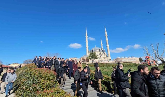 "Şükürler olsun Edirne'ye bir kez daha gelmeyi bizlere nasip etti. Burada cuma namazımızı kıldık, dua ettik, vatandaşımızla sohbet ettik, onları dinledik. Şükürler olsun Selimiye, Mimar Sinan'ın Koca Sinan'ın bize bıraktığı emanet. İnşallah bugün daha güzel, daha güçlü olacak; bunun mücadelesini yapıyoruz. Etrafını düzenledik, biliyorsunuz daha önce bir meydan düzenlemesi yaptık. Şimdi de hem camimizin restorasyonu yapıldı hem de içerideki süslemelerimiz, hatlarımız ve tüm eserlerimiz yeniden gözden geçirildi. Vatandaşımız huzur içerisinde namaz kılıyor, dua ediyor. Türkiye'nin dört bir yanından Edirne'mize vatandaşımız geliyor, hepsiyle burada görüşme fırsatı oldu. Bugün Edirne'de hem müjdelerimiz olacak; sosyal konutla ilgili kura çekimini gerçekleştireceğiz. Belediyelerimizle, vatandaşımızla görüşeceğiz. Valimizle, milletvekillerimizle ve teşkilatımızla birlikte dolu dolu bir Edirne günü geçireceğiz. Selam söylüyoruz."