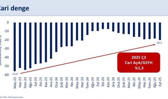 Hazine ve Maliye Bakanı Mehmet Şimşek, sosyal medya hesabından cari açık verilerine ilişkin açıklamada bulundu. Şimşek, cari dengenin temellerini daha da sağlamlaştıracaklarını belirterek, "Eylülde yıllık cari açık 20,1 milyar dolar gerçekleşti. Üçüncü çeyrekte yıllık açığın milli gelire oranının yüzde 1,3 ile yatay seyretmesini bekliyoruz. Dış finansmana erişimdeki olumlu görünüm üçüncü çeyrekte de sürdü. Reel sektörün ve bankaların dış borç çevirme oranları ocak-eylül döneminde sırasıyla yüzde 167 ve yüzde 235 gerçekleşti. Finansman kalitesini iyileştiren, üretim kapasitesini ve istihdamı artıran doğrudan yatırımlar, yılın ilk dokuz ayı itibarıyla 11,4 milyar dolar ile son on yılın en yüksek seviyesine ulaştı. Net doğrudan yatırım girişi geçen yılın aynı dönemine göre sınırlı artarak, 4,3 milyar dolar gerçekleşti. Enerjide dışa bağımlılığı azaltan, ihracatta ve hizmet ticaretinde katma değeri ve rekabet gücünü artıran politikalarımızla sürdürülebilir cari dengenin temellerini sağlamlaştıracağız" dedi.