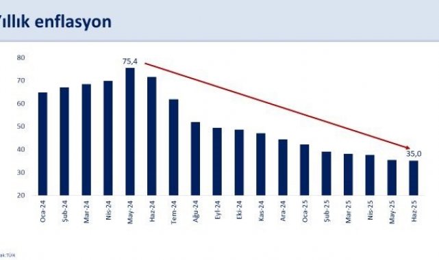 "Haziranda aylık enflasyon, jeopolitik gerginlikler nedeniyle artan petrol fiyatlarına rağmen yüzde 1,37 gerçekleşti. Dezenflasyonun devam ettiği haziranda yıllık enflasyon yüzde 35'e geriledi. Ataletin yüksek olduğu hizmetlerde yıllık enflasyon 3 yılın ardından yüzde 50'ye indi. Dezenflasyon sürecindeki kararlılığımız hem gerçekleşme verilerinde hem de beklentilerde belirginleşti. Son dönemde gerileyen emtia fiyatları, finansal piyasalarda azalan oynaklık, iyileşen enflasyon beklentileri ve destekleyici talep şartları yılın ikinci yarısında enflasyondaki düşüşün sürmesine katkı sağlayacak. Vatandaşlarımız müsterih olsun; gıda ve dayanıklı tüketim ürünlerinden eğitime, ulaştırmadan diğer birçok sektöre kadar enflasyonda belirgin bir yavaşlama başladı ve bu eğilim devam edecek."