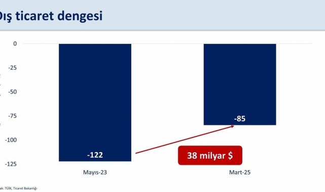 Geçen yılın mart ayına göre verileri değerlendiren Bakan Şimşek, "Yıllık dış ticaret açığı martta bir önceki yılın aynı ayına göre 7,3 milyar dolar iyileşerek 84,5 milyar dolar gerçekleşti. Gün eksiğine rağmen mart ayında ihracat yıllık yüzde 3,2 artarken enerji hariç ithalat artışı yüzde 0,8 oldu. Küresel büyümeyi olumsuz etkilemesi öngörülen tarife artışları piyasalarda risk algısını artırıp emtia fiyatları üzerinde aşağı yönlü baskı oluşturmaktadır" açıklamasında bulundu.