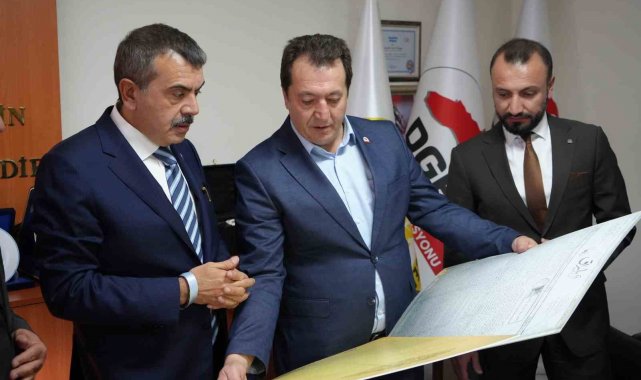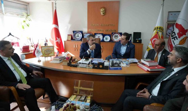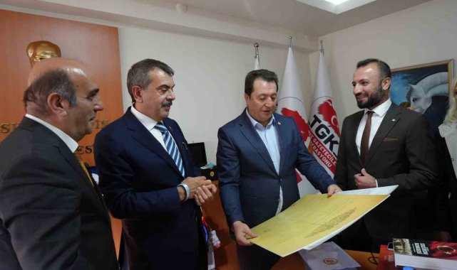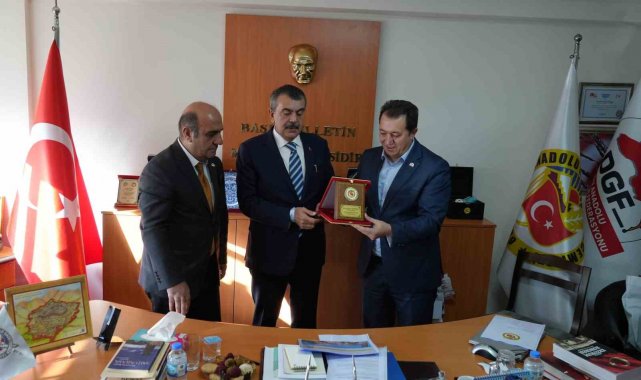 Ziyaret sonunda DAGC Başkanı Türkez ve DGF Başkanı Tarakçıoğlu, Bakan Tekin'e ziyareti anısına bir plaket sundu.