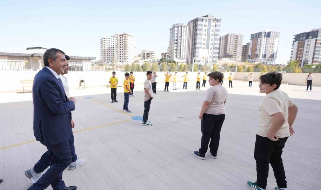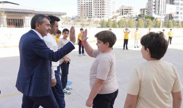 Bakan Tekin, önce okul bahçesinde beden eğitimi dersine katılan öğrencilerin yanına giderek onlarla sohbet etti. Bakanı karşılarında gören öğrenciler şaşkınlık yaşadı.