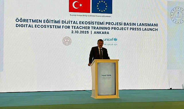 Öğretmenlerin dijital yetkinliklerinin artırılmasını hedefleyen 'Öğretmen Eğitimi Dijital Ekosistem Projesi' Ankara'da bir otelde düzenlenen programla tanıtıldı. Projenin lansmana Milli Eğitim Bakanı Yusuf Tekin, Birleşmiş Milletler Çocuklara Yardım Fonu (UNICEF) Temsilcisi Paolo Marchi, kamu kurum ve kuruluşları temsilcileri katıldı. Programın açılış konuşmasını yapan Bakan Tekin, eğitimin en önemli işlevinin temel hak ve hürriyetlerin güvence altına alındığı bir dünya oluşturmak olduğunu belirterek, dünyanın her noktasında eğitimcilere büyük sorumluluk düştüğünü söyledi. Tekin, "Eğer bugün dünyada bir insan hakkı ihlali varsa dünyanın neresinde olursa olsun savaşı, savaş yapmayı ve başkasının hakkını ihlal etmeyi kendisinde bir hak olarak gören bir zalim varsa, kuşkusuz bunda biz eğitimcilerin payı var. Eğer biz hayatın merkezine, işlerimizin, çalışmalarımızın merkezine insan hakları ihlallerinin olmadığı bir dünyayı, barışın, demokrasinin ve insan haklarının egemen olduğu bir dünyayı yeterince verebilseydik bugün dünyada vahşet yapan siyasetçiler, vahşet yapan, soykırım yapan devlet adamları olmazdı" ifadelerini kullandı.