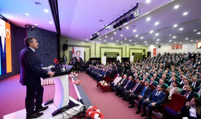 Bakan Tekin, Erzurum'daki Hizmet İçi Eğitim Enstitüsü'nde düzenlenen üçüncü ve son "İlçe Milli Eğitim Müdürleri Toplantısı"na katıldı. Burada konuşan Tekin, Milli Eğitim Bakanlığı'nı Türkiye'nin en büyük ailesi olarak tanımladıklarını vurgulayarak, "Gerçekten çok büyük camiayız. Böyle söylendiğinde belki büyüklük gözükmüyor ama işte rakamlar üzerinden bir konuşursak bizim muhatap olduğumuz yaklaşık 60 bini resmi okul olmak üzere toplam 75 bin okul ve toplamda 100 binin üzerinde kurum, yaklaşık 1 milyon 100 bini resmi olmak üzere 1 milyon 250 binin üzerinde öğretmen arkadaşımız var. 18 milyon öğrenci ve her bir hesap ettiğimizde toplumun aslında tamamını yaklaşık 50-60 milyonluk bir kitleyi ilgilendiren bir bakanlığız. Bu kadar büyük bir aile 922 ilçenin tamamında yönetici arkadaşlarımız, okullarımız, Anadolu'nun her köşesinde kurumlarımız var. Dolayısıyla bu kadar devasa bir yapının çözmesi gereken sağlıklı bir iletişim mekanizmasının oluşturulması şart. Eğer sağlıklı bir iletişim mekanizması kurulamazsa bu ailenin fertleri arasında bir uyum tesis edilemezse, bu kadar büyük bir yapının başarılı olma şansı, aynı sesi çıkarma şansı, aynı amacı hayata geçirmek için mücadele etme şansı olmaz. Dolayısıyla biz Milli Eğitim Bakanlığı olarak başlangıçtan beri en temel hedefimiz; bakandan başlayıp en ücra köşedeki hizmet eden arkadaşımıza kadar Milli Eğitim Bakanlığının ne yaptığını, bütün fertlerinin bilmesi ve bu bilgi dahilinde bir bütünün parçaları mantığıyla hareket ederek bütünü tamamlayan, uyumu tesis eden bir şekilde çalışmasını temin etmek bizim başlangıçtan beri en temel hedefimizdir" şeklinde konuştu.