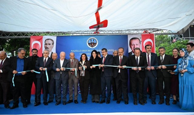 Bakan Tekin'in Aydın ziyaretlerinin son durağı olan Nazilli Erzurumlular Derneği hizmet binası açılışına Aydın Valisi Yakup Canbolat başta olmak üzere Nazilli Kaymakamı Huriye Küpeli Kan, AK Parti Aydın Milletvekilleri Mustafa Savaş, Seda Sarıbaş ve Ömer Özmen, Aydın Büyükşehir Belediye Başkanı Özlem Çerçioğlu ile Erzurum Büyükşehir Belediye Başkanı Mehmet Sekmen, AK Parti Aydın İl Başkanı Mehmet Erdem, AK Parti ve MHP'li ilçe başkanları, Ege Erzurumlular Federasyonu Başkanı Zakir Salmaoğlu ile çok sayıda Erzurumlu katıldı. Dernek Binası önünde gerçekleştirilen açılış töreninde Nazilli Dernek Başkanı Yüksel Karabıyık, Ege Erzurumlular Federasyonu Başkanı Zakir Salmaoğlu ve Erzurum Büyükşehir Belediye Başkanı Mehmet Sekmen birer konuşma yaptı.