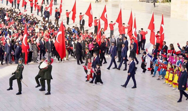 Milli Eğitim Bakanı Yusuf Tekin başkanlığındaki bakanlık bürokratları, öğretmen temsilcileri ve öğrencilerden oluşan heyet, Aslanlı Yol'dan yürüyerek Mustafa Kemal Atatürk'ün mozolesine geldi.