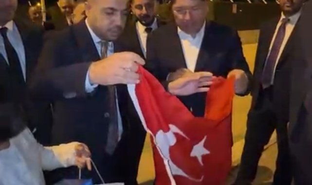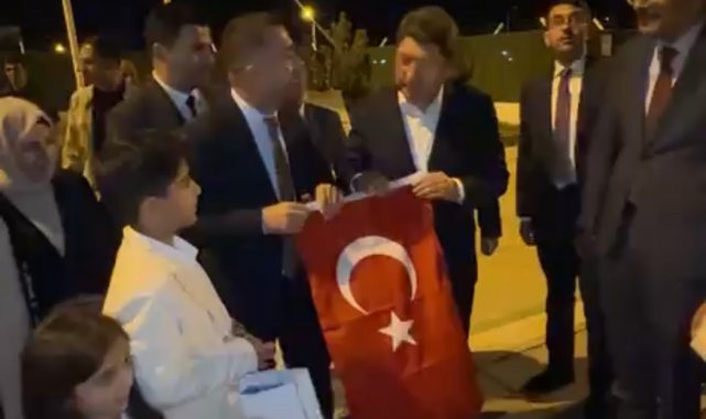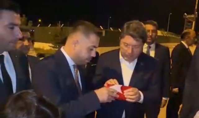 Adalet Bakanı Yılmaz Tunç, Hakkari'deki ziyaret ve açılışlarının ardından Yüksekova'dan ayrılırken anlamlı bir sürprizle karşılaştı. Bakan Tunç, kendisine uzatılan Türk bayrağını öperek bölgeden ayrıldı.
