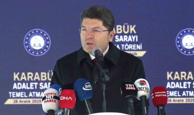 Adalet Bakanı Yılmaz Tunç, Karabük Adalet Sarayı'nın temel atma töreninde yaptığı konuşmada, Türkiye genelinde 395 müstakil adalet binası inşa ettiklerini belirterek, adaletin sadece fiziki mekanlarla değil vesayetçi ve darbeci anlayışlardan arındırılarak milletin yargısı haline getirildiğini söyledi.
