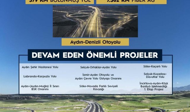 Öte yandan kent genelinde devam eden önemli projeler arasında, Aydın Şehir Hastanesi Yolu, Selçuk-Ortaklar-Aydın Yolu, Söke-Kaçarlı Yolu, Selçuk-Kuşadası-Davutlar Yolu, Labranda-Karpuzlu Yolu ile İzmir-Aydın Otoyolu ve Aydın Çevre Yolu üstyapı onarımı yer aldı. Ayrıca Aydın-(Aydın-Muğla) il sınırı BSK onarımı, Söke-Novada farklı seviyeli kavşağı ve İncirliova-Aydın-Köşk Banliyö İşletmeciliği 1. etap projesinin de sürdüğü bildirildi.