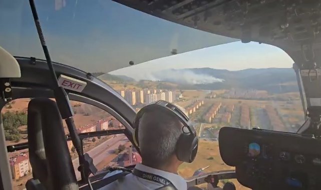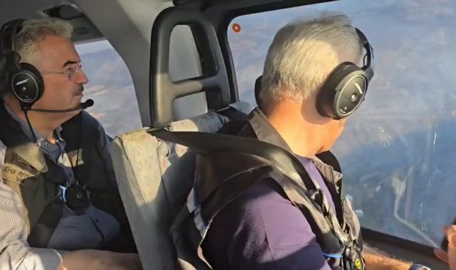 Bakan Uraloğlu, helikopterle yangın bölgesini havadan inceledi