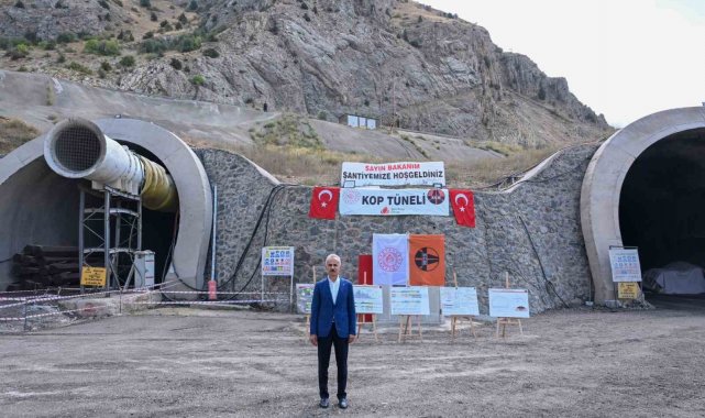 Ulaştırma ve Altyapı Bakanı Abdulkadir Uraloğlu, yapımı devam eden Kop Tüneli'ndeki çalışmaları yerinde inceledi.