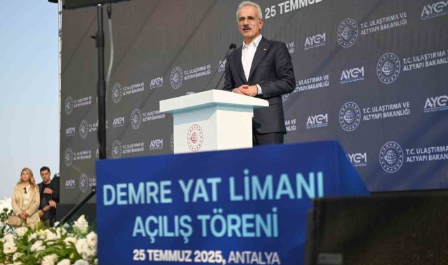 Ulaştırma ve Altyapı Bakanı Abdulkadir Uraloğlu, Demre Yat Limanı'nın hizmete açılmasıyla Türkiye'nin yat bağlama kapasitesinin yaklaşık 26 bine ulaştığını söyleyerek, "Türkiye'yi uluslararası yat turizminin vazgeçilmez destinasyonlarından biri haline getirdik" dedi.
